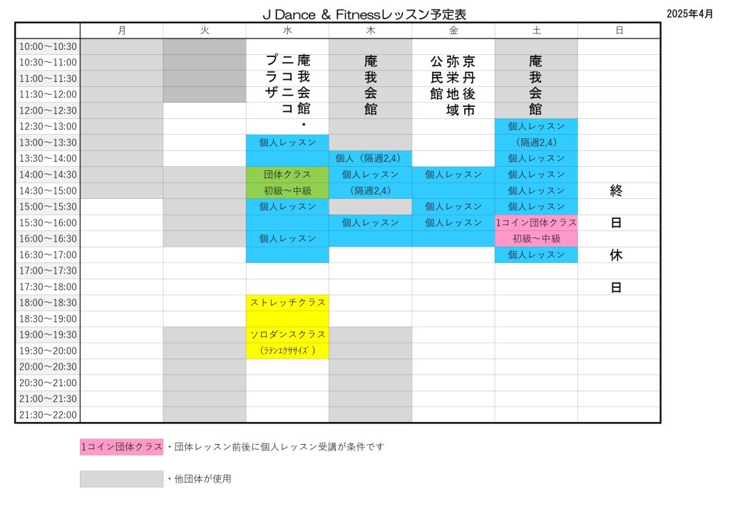空白時間は、個人レッスン、カップルレッスンが受講できます